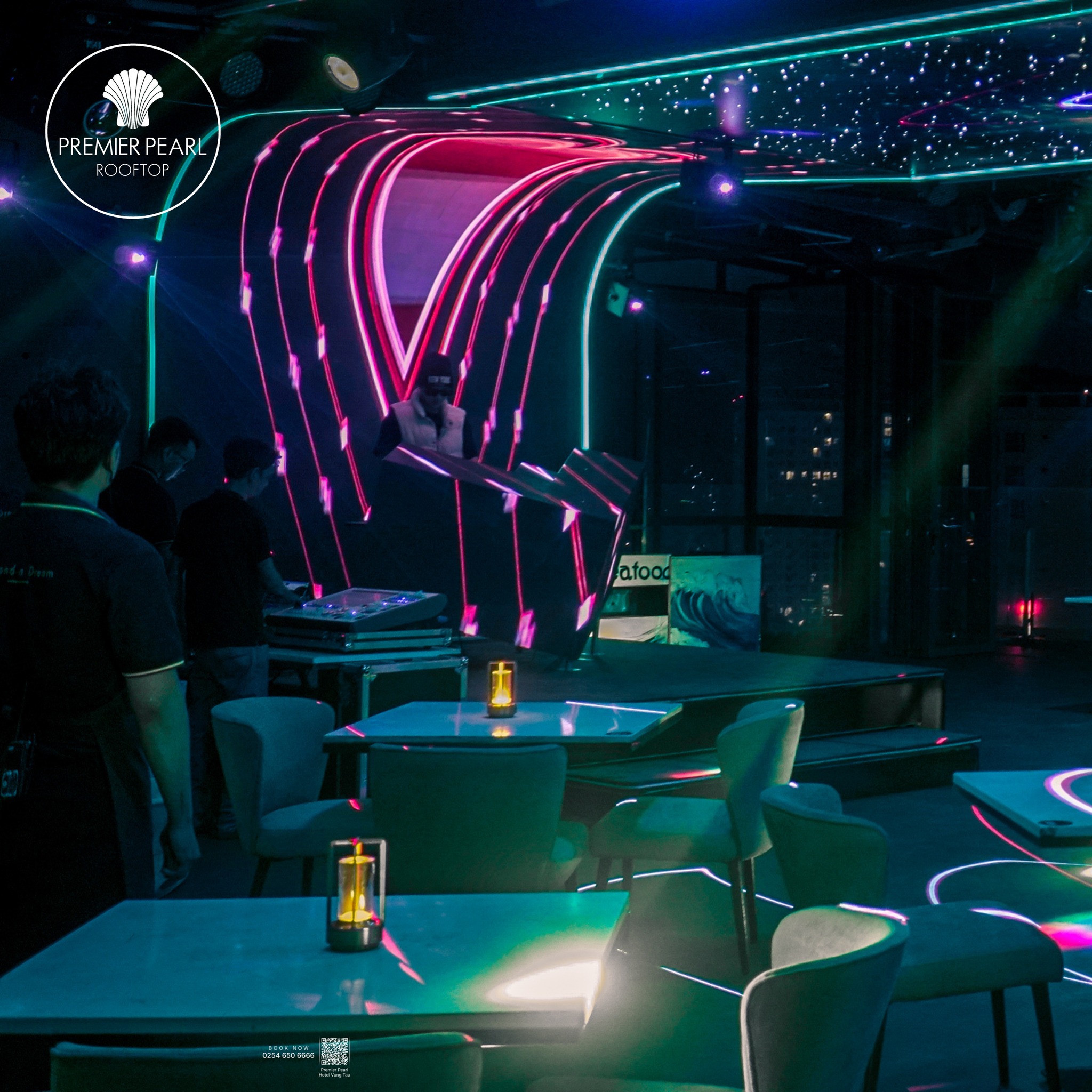(đắm chìm trong không gian biểu diễn dj sôi động và các dancer bốc lửa)